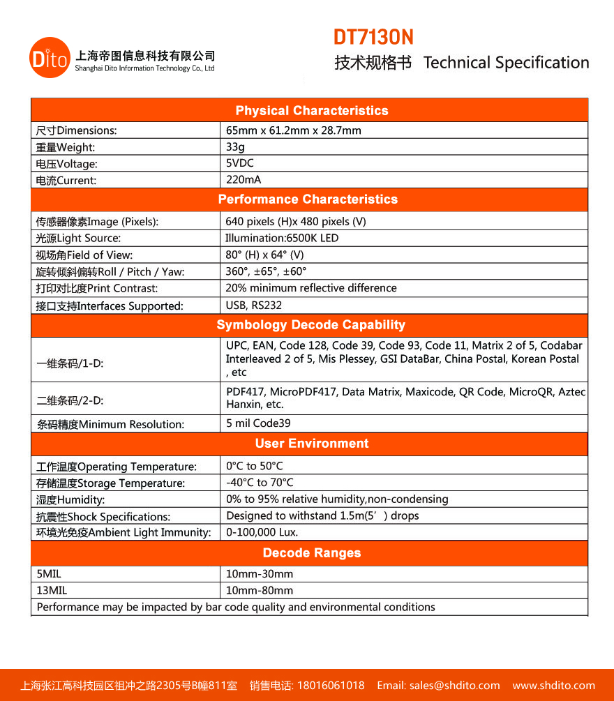 DT5130-BLE 产品规格书